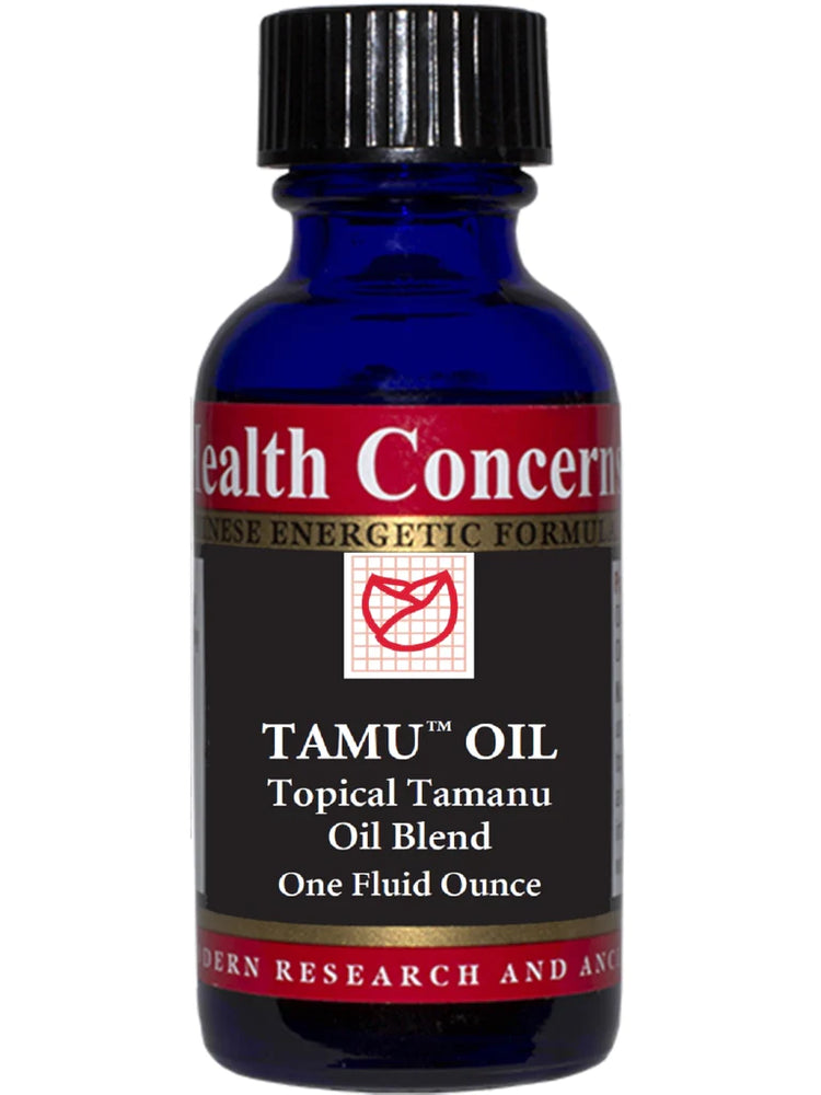 Health Concerns’ Tamu Oil is designed to maintain a healthy complexion. The chief ingredient is tamanu (calophyllum inophyllum)‚ which, on a cellular level, is said to promote the growth of new skin. Tamanu oil is used by Pacific Island folk medicine to heal minor cuts, bruises, and scrapes.